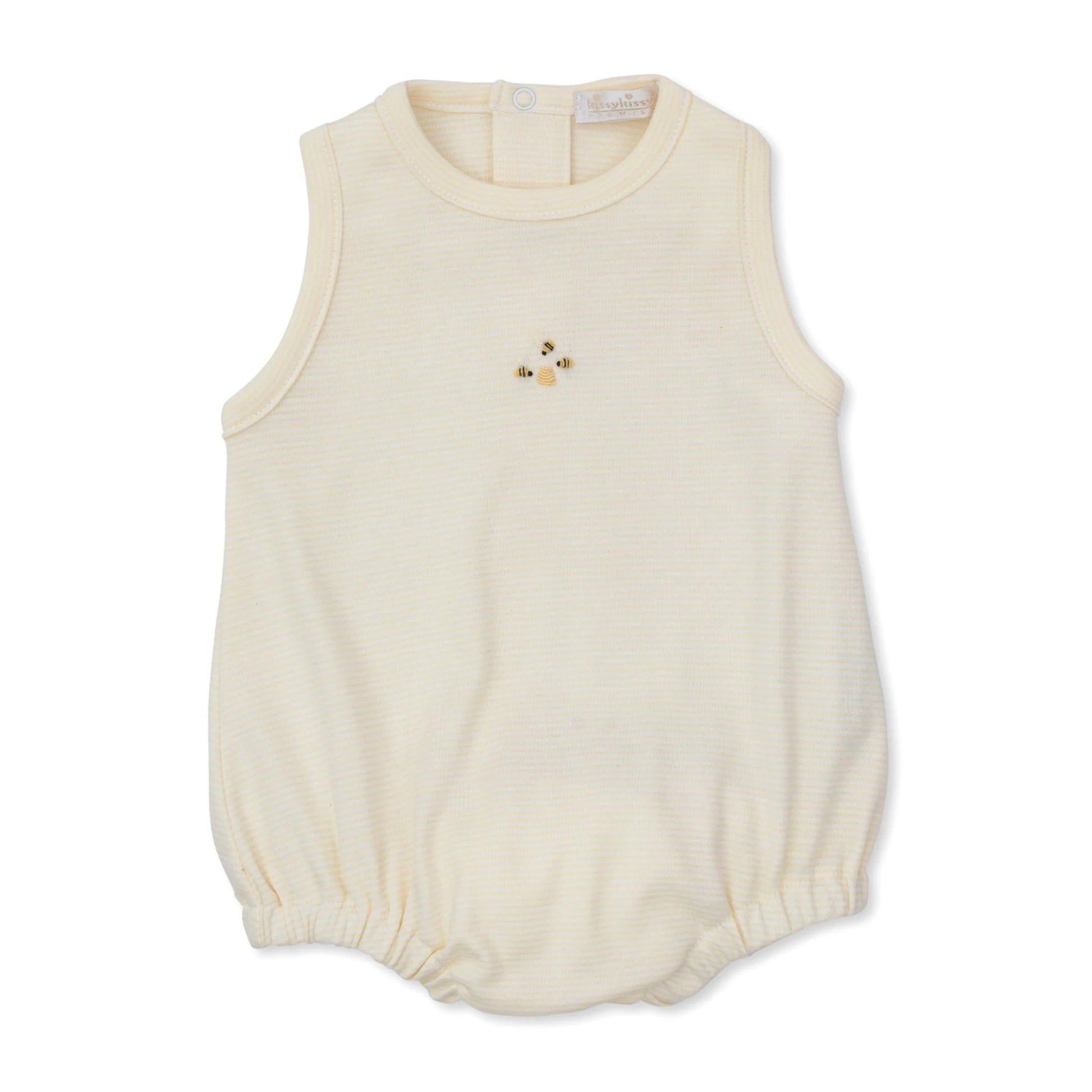 Beautiful bee hive embellishments and sweet stripes make this bubble perfect for your baby. Made from the softest Pima cotton for ultimate comfort.