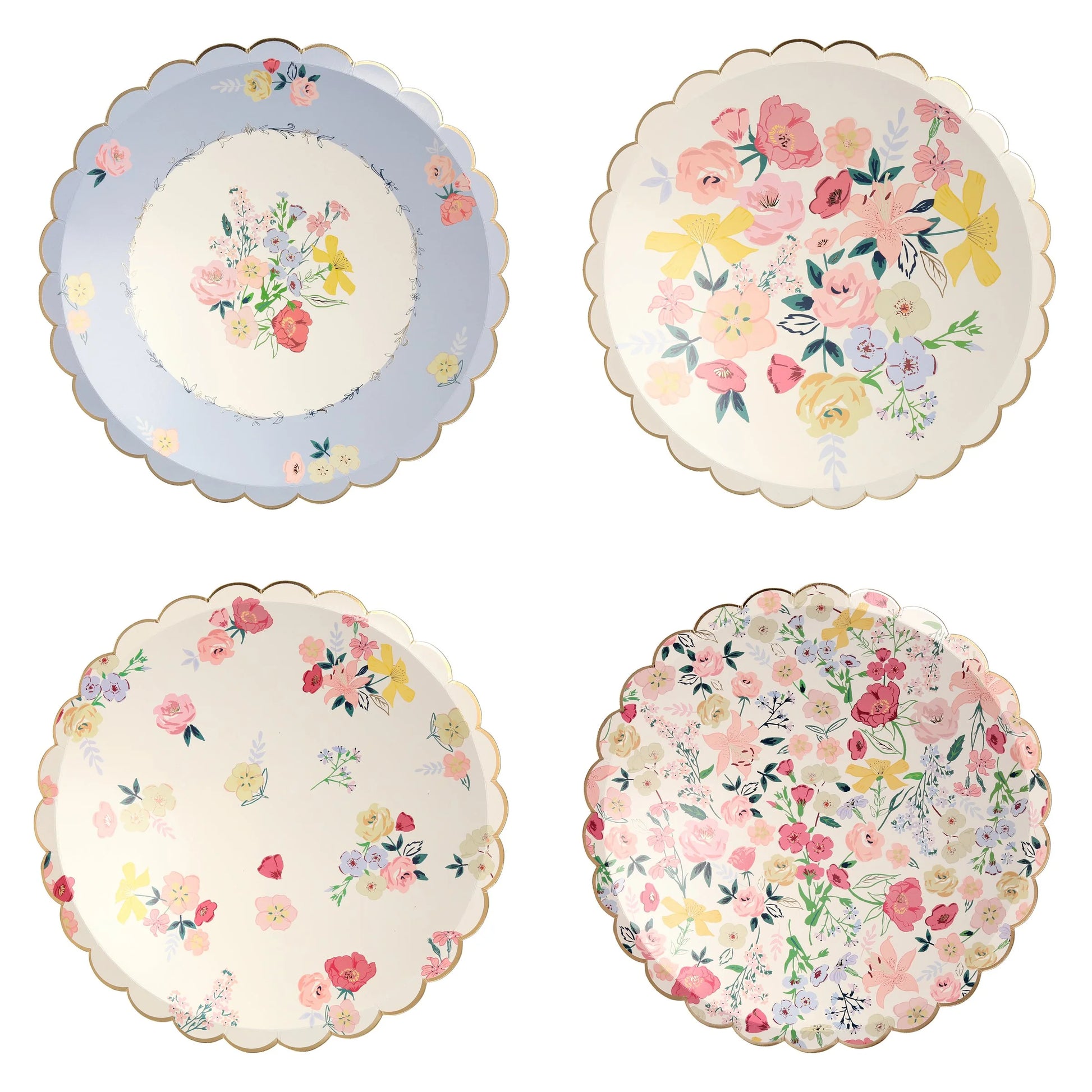 Looking for pretty plates for your party? Our elegant English Garden paper dinner plates are perfect for a tea party, engagement, wedding or anniversary. Each pack features four gorgeous floral designs with stunning gold foil detail.
