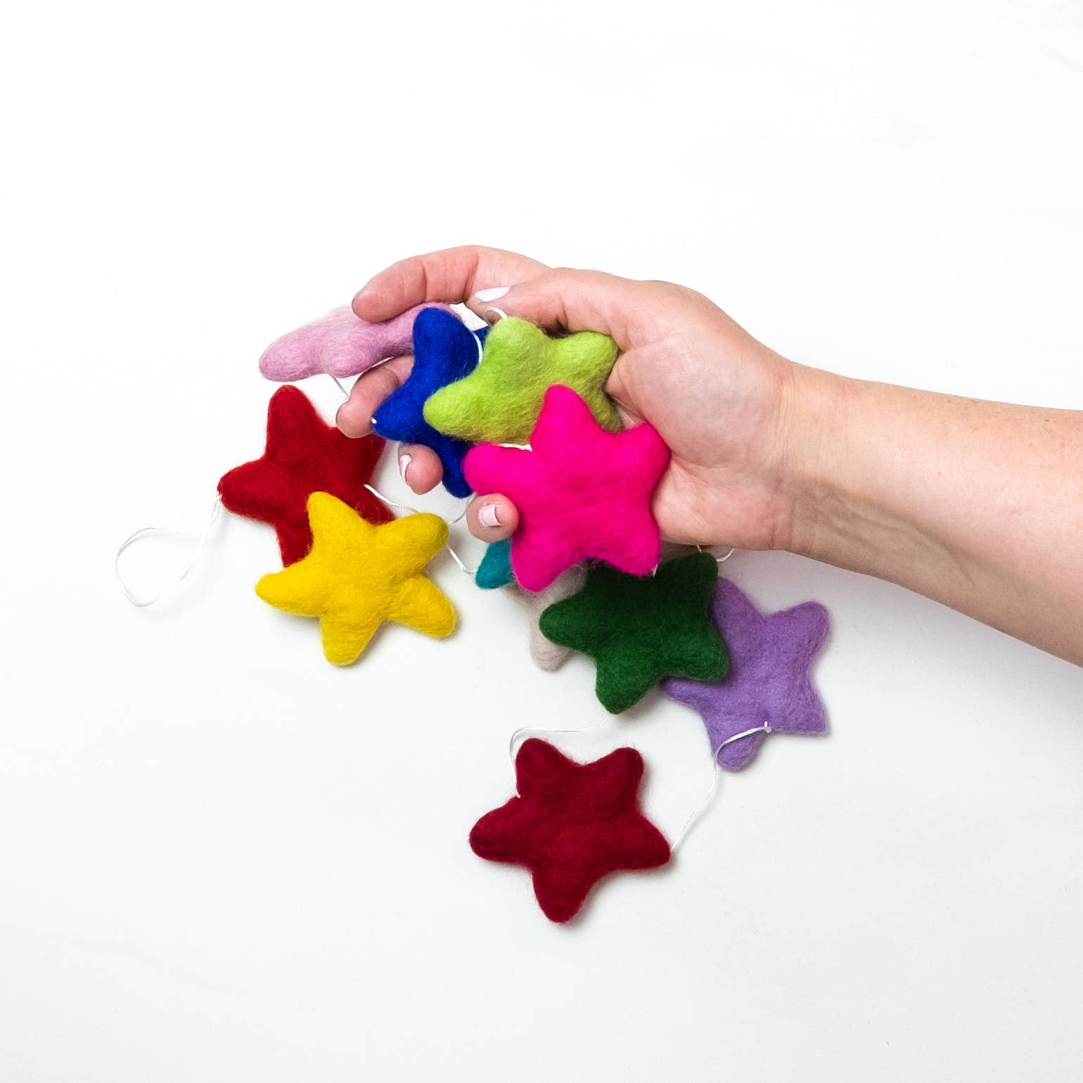 In bright bold colors, our star garland adds brightness to any room. Approx. 60" long.