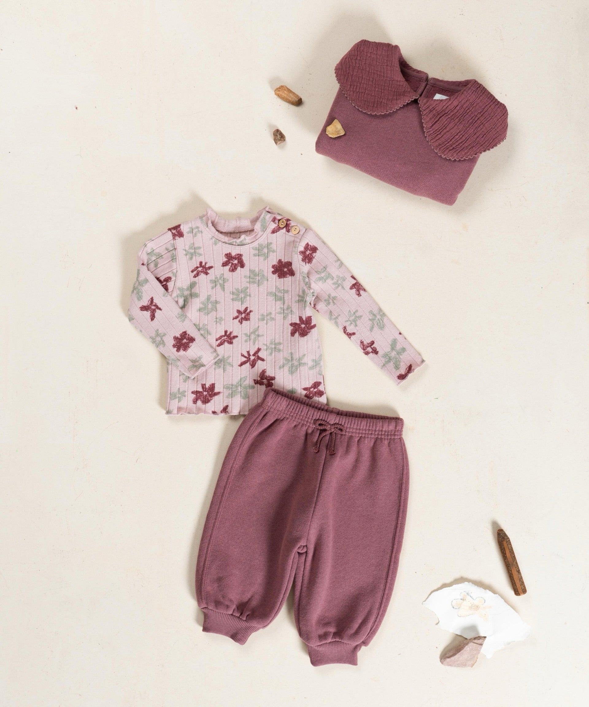These trousers are made of jersey with a blend of cotton, recycled cotton and recycled polyester, in Dark Pink color. They feature an elastic waistband and cuffs, and a decorative drawstring.