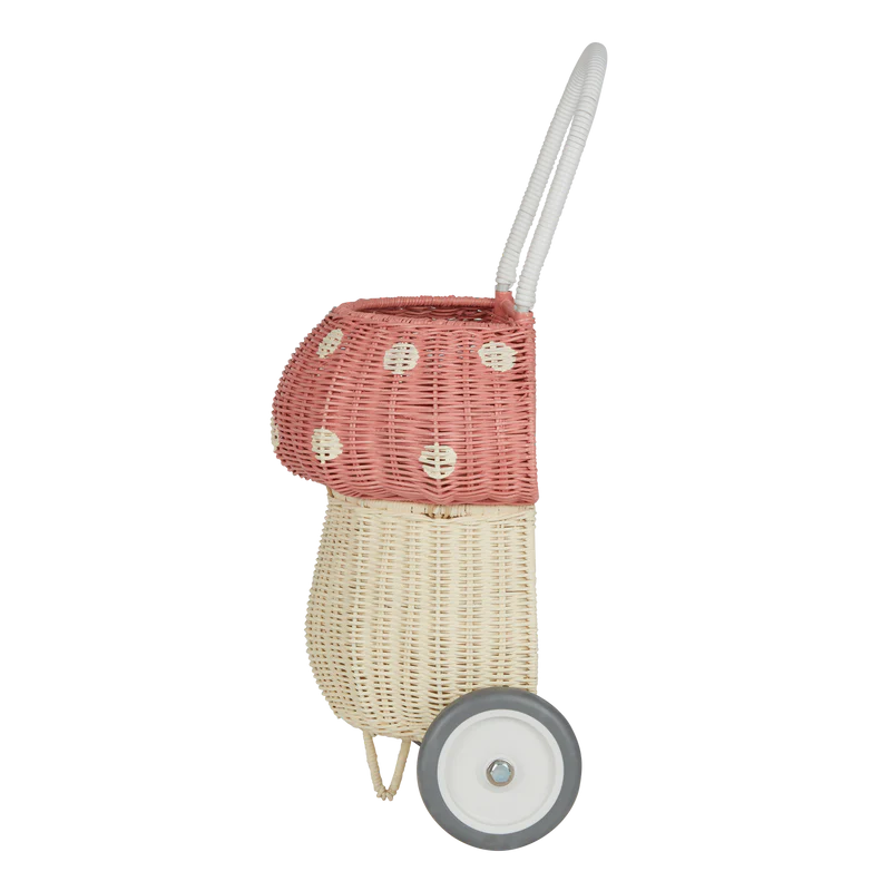 Meet our whimsical pink Mushroom Luggy. It exists in the world between practical and fairytale and is perfect for lugging about at home or on the go.