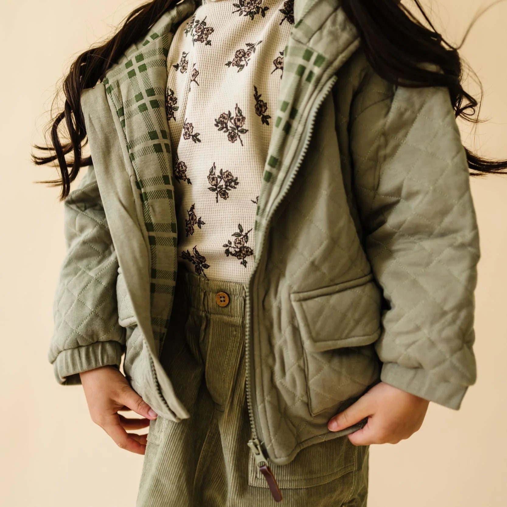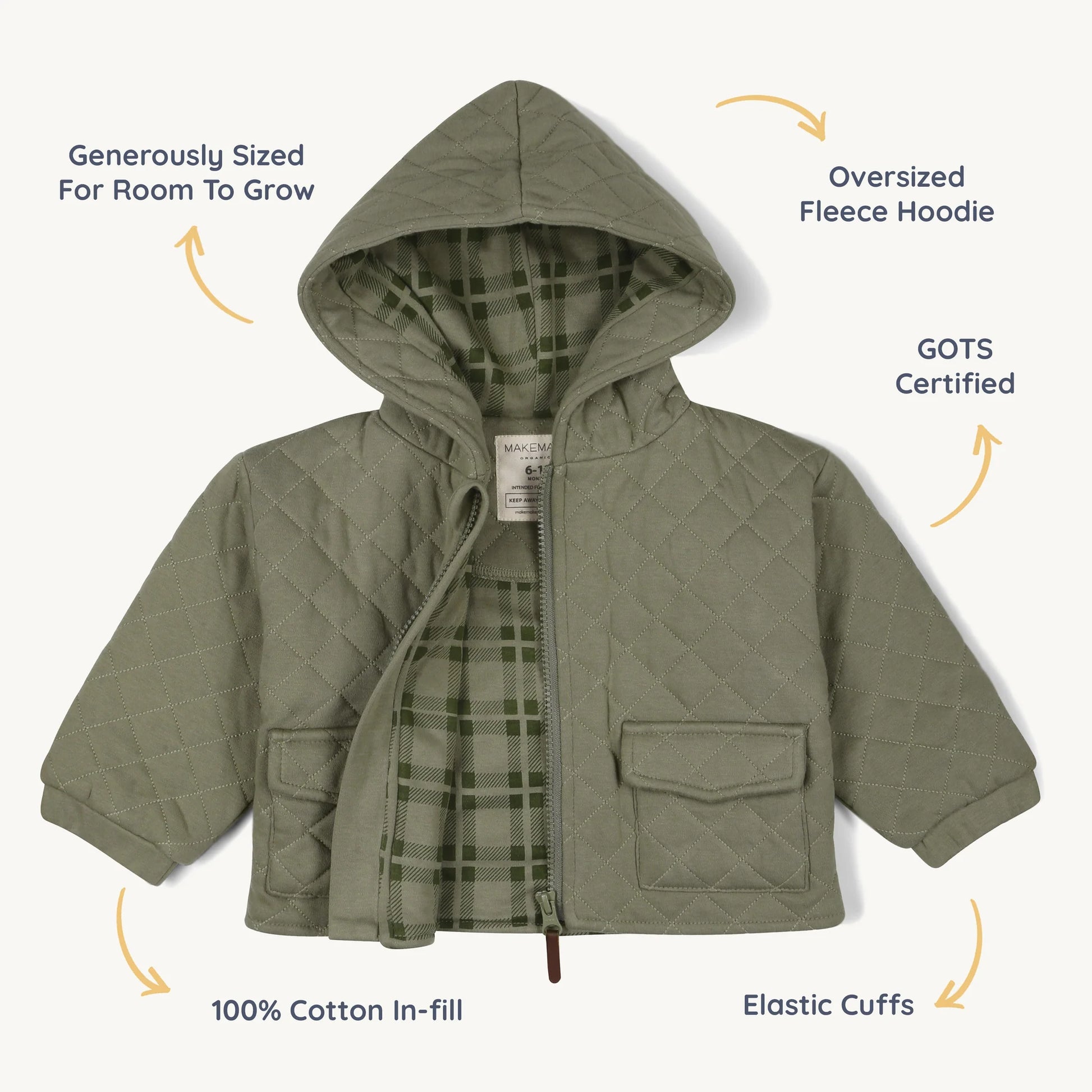 Organic Quilted Hooded Jacket - Olive