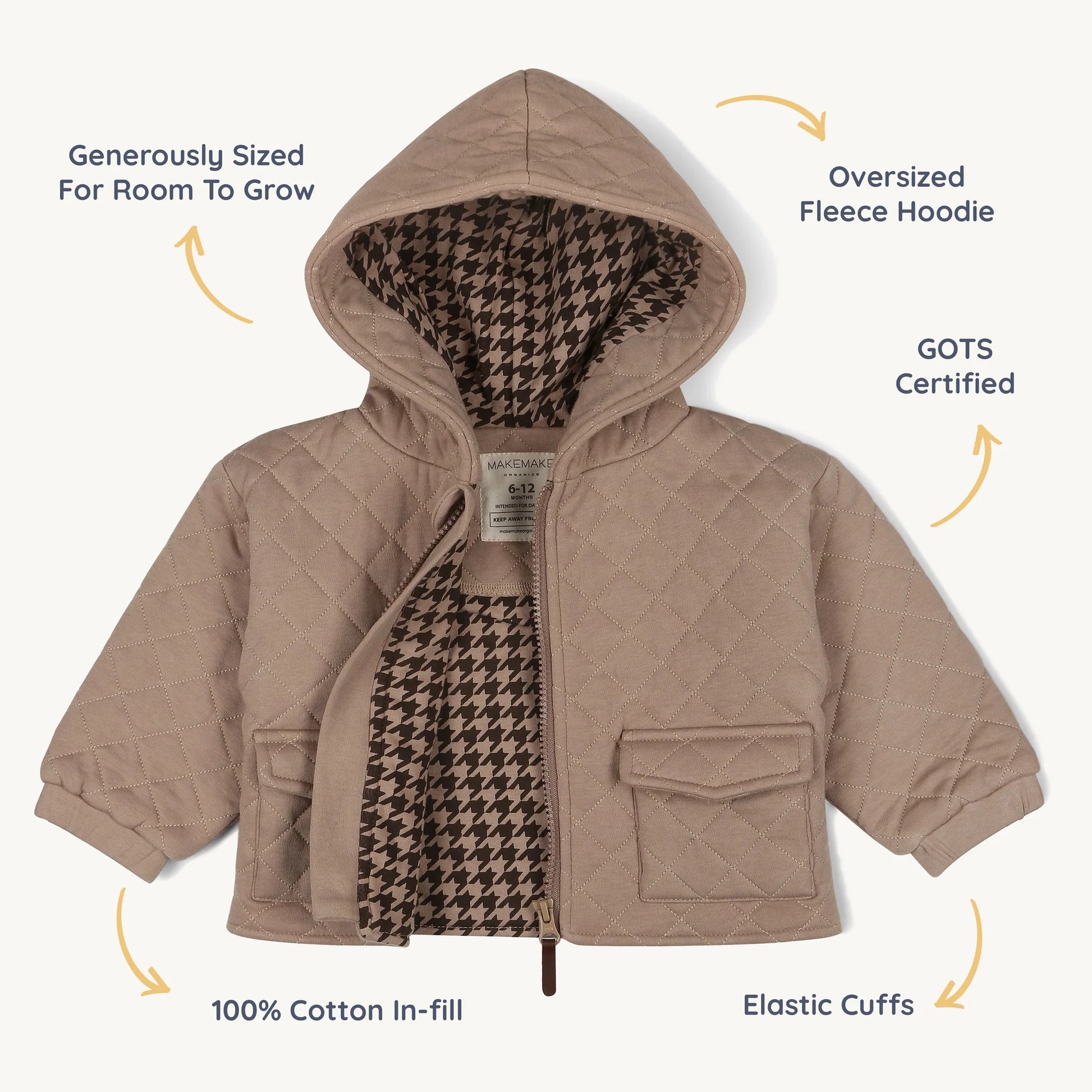 Indulge your little one in warmth and style with our Quilted Hooded Jacket for kids. Crafted from the gentlest organic cotton, it pampers delicate skin with softness. The charming buttons add an extra touch of allure, making it the ideal pick for your trendsetting baby or toddler. Elevate their wardrobe and keep them cozily chic in every season!