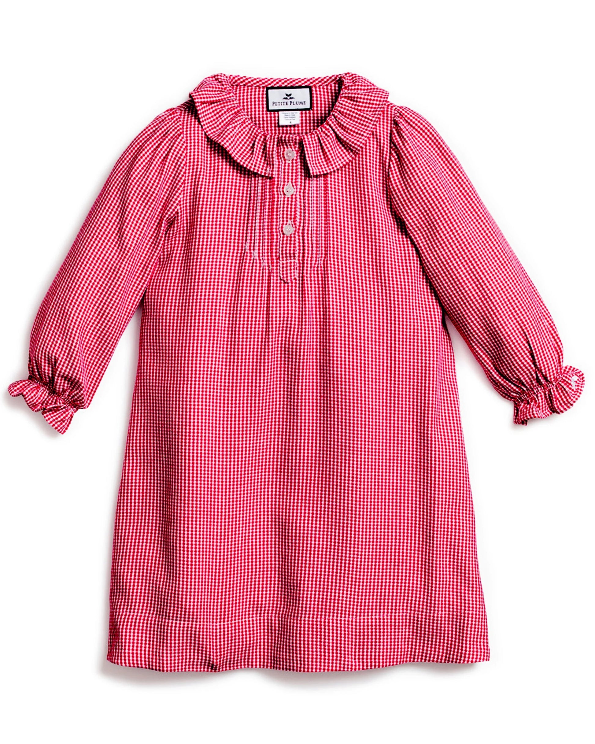 Petite Plume Girl's Flannel Victoria Nightgown || Red Mini Gingham
