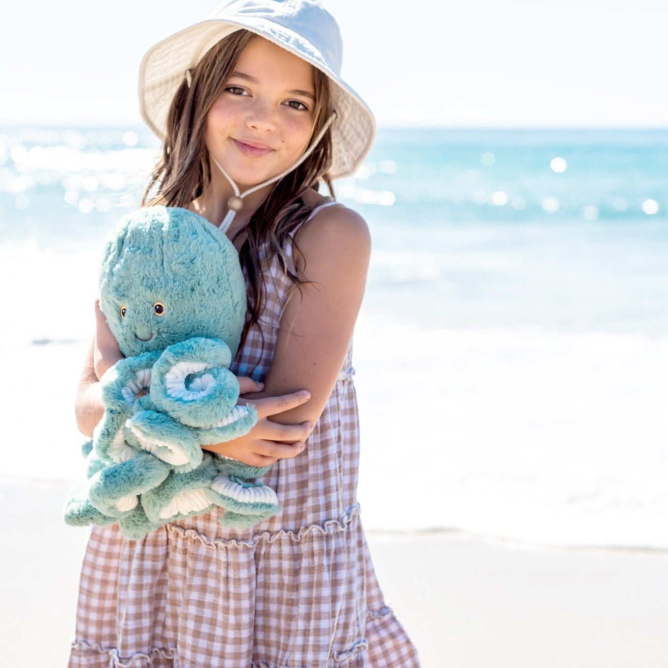 Our soft blue octopus plush toy is a great friend for your children. OB's sea creature toys are inspired by our coastal home and are a great snuggly friend for your little ones and their adventures. We are passionate about design and use a combination of master craftsmen and high-quality materials to create unique children's toy collections. Each soft toycomes with a sweet and fun bio. Perfect for gifting and a wonderful keepsake. Our soft toys are created for children of varying ages.