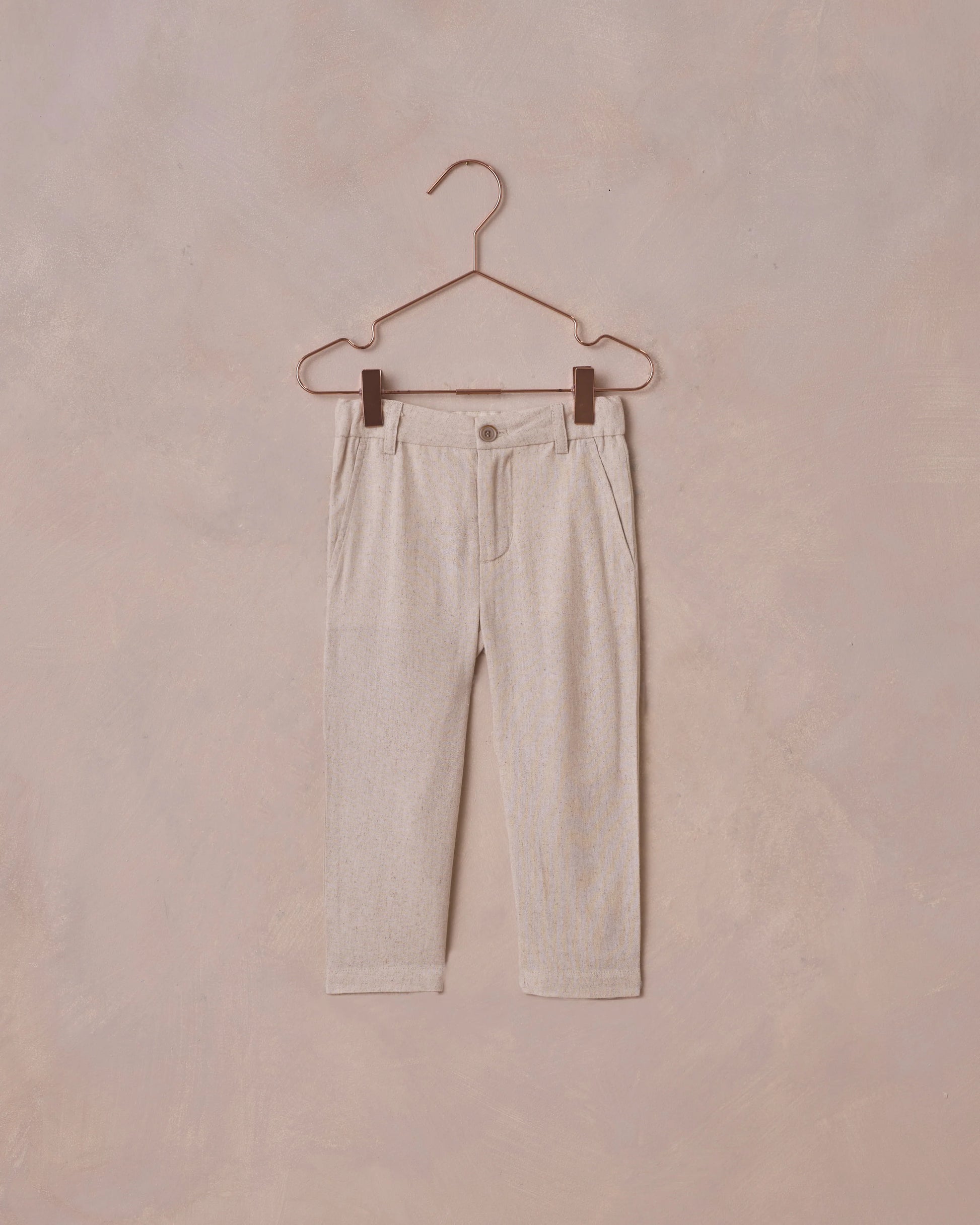 Suit up in our Sebastian Pant. This tailored look is made from our soft textured cotton melange fabric; featuring an adjustable elasticized waistband, zip fly with a marbled button, and pockets.