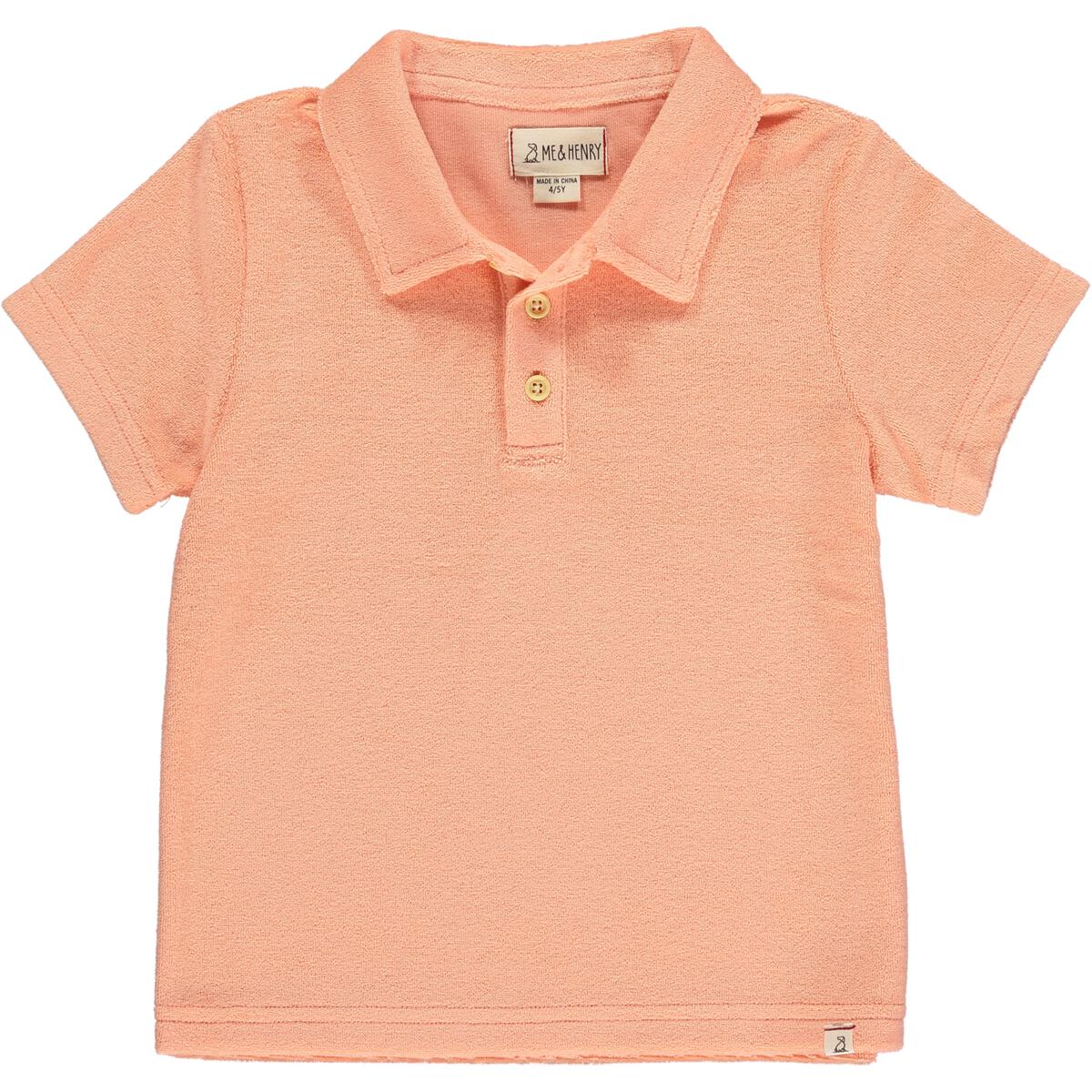 Terry Polo Shirt in peach. Super Soft. Three button placard.