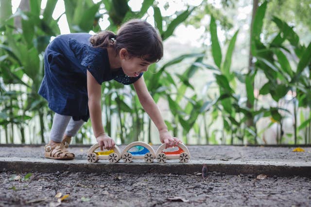 The semi-circular-shaped cars come with colored water on the inside with the option of red, blue or yellow. Children will enjoy rolling it around and learning about new colors by putting the cars together. This version comes with blue liquid on the inside.